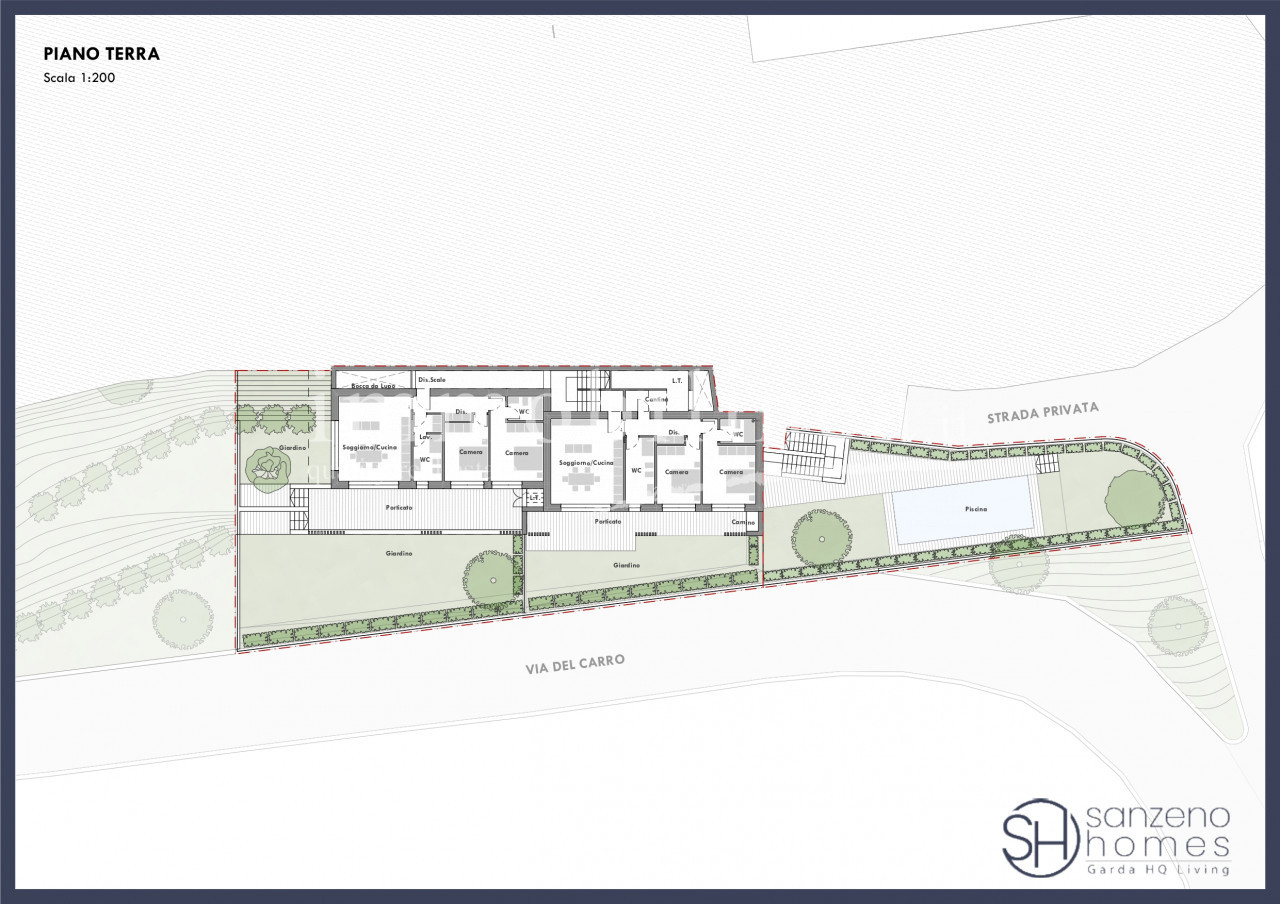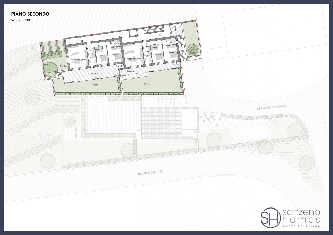 Imagine living immersed in the tranquility and serenity that only this location can offer. This prestigious residence will be built soon and includes six residential units designed to ensure absolute privacy for residents. Four ground-floor apartments boast private gardens overlooking the lake, perfect for outdoor moments with family and friends, while two elegant first-floor apartments feature spacious terraces from which to admire breathtaking views of the lake. All 6 units will enjoy a communal swimming pool as well as private garages.