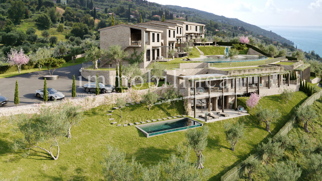 TORRI DEL BENACO - A complete immersion in tranquility with a stunning view of Lake Garda while maintaining excellent accessibility! Located on the first hill of Torri del Benaco, one of the most charming locations on the Veronese shore of Lake Garda, we offer for sale this exclusive brand-new residence that stands out for its unique architecture reminiscent of the styles of ancient rural homes by the lake but with modern and functional enjoyment and technologies.
