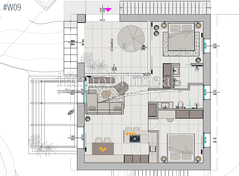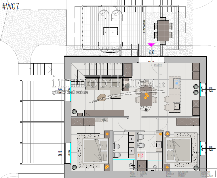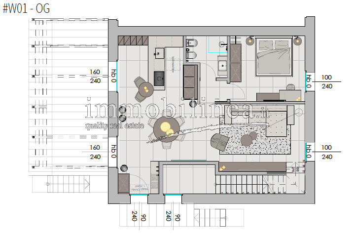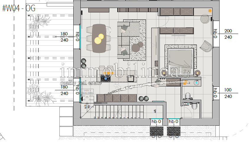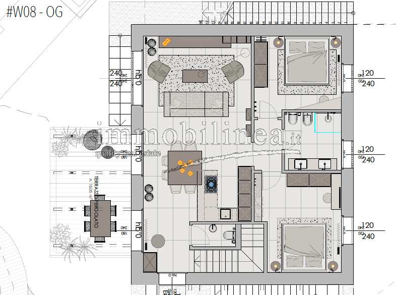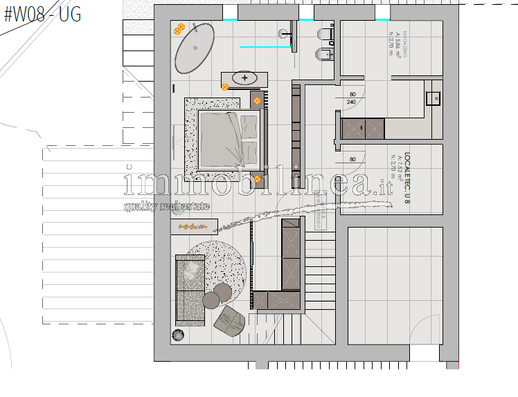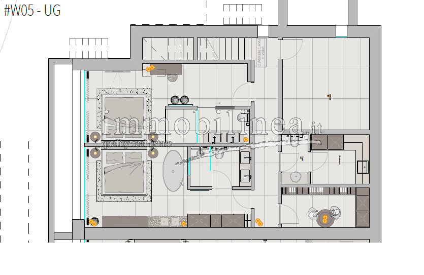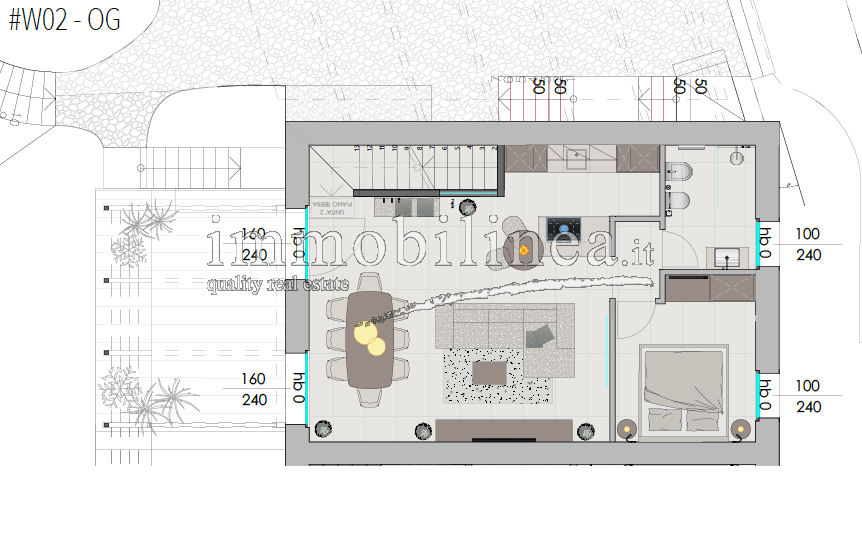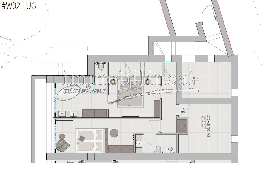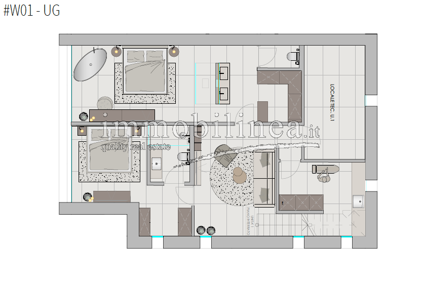 The units, available in various sizes, will be distributed over two levels connected internally by a private staircase. The spaces will be spacious and bright; the open-plan living area will include a living room with dining area and fully equipped kitchen; there will be generous master bedrooms, and bathrooms featuring elegant finishes and double elements such as separate sinks or freestanding bathtubs. Each unit will also have technical/storage rooms ideal for optimizing domestic space.