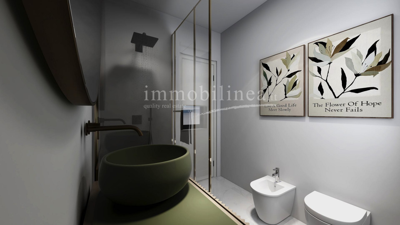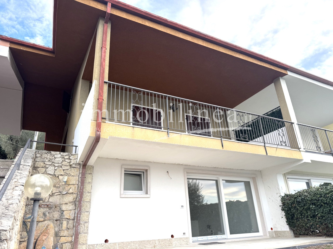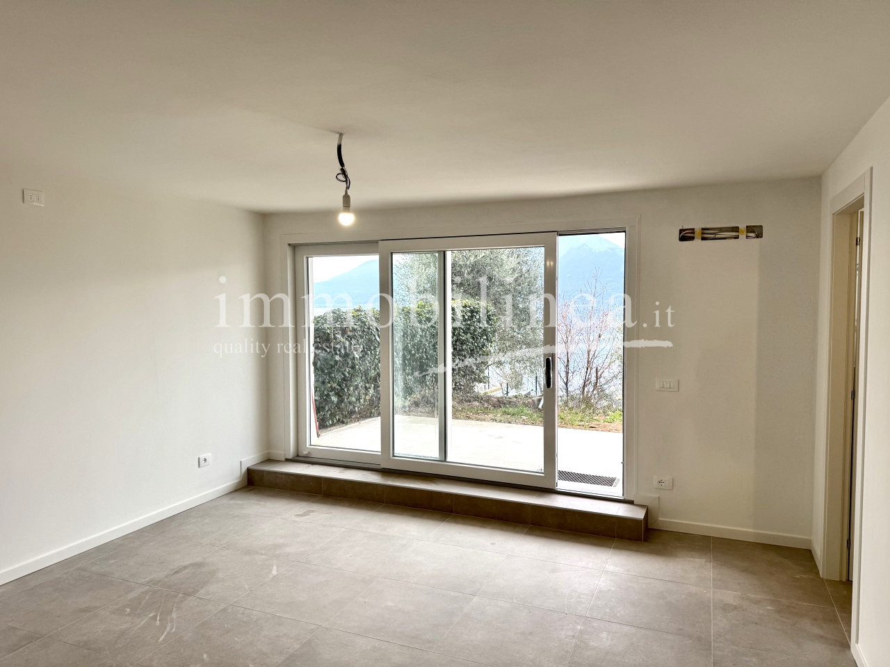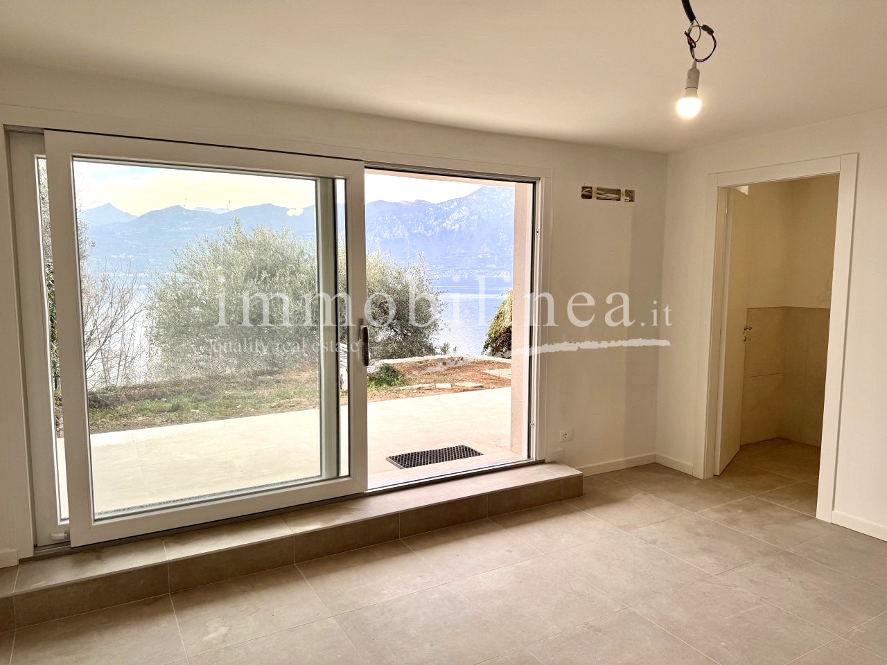 Al piano seminterrato, completamente ritrutturato un godibilissimo monolocale autonomo con bagno finestrato, un portico ed il giardino nel quale poter inserire una piccola piscina con una bellissima vista lago!