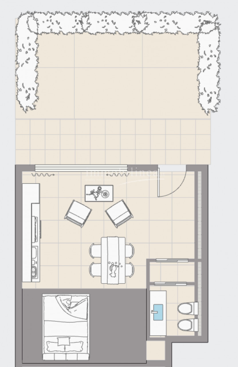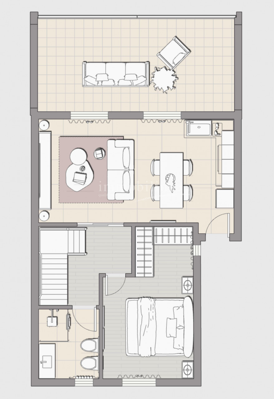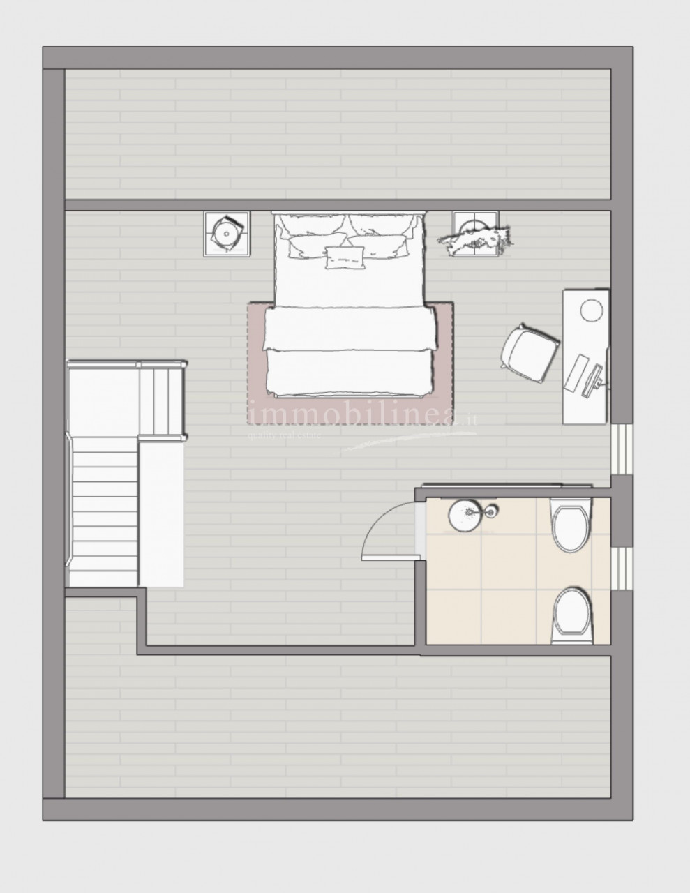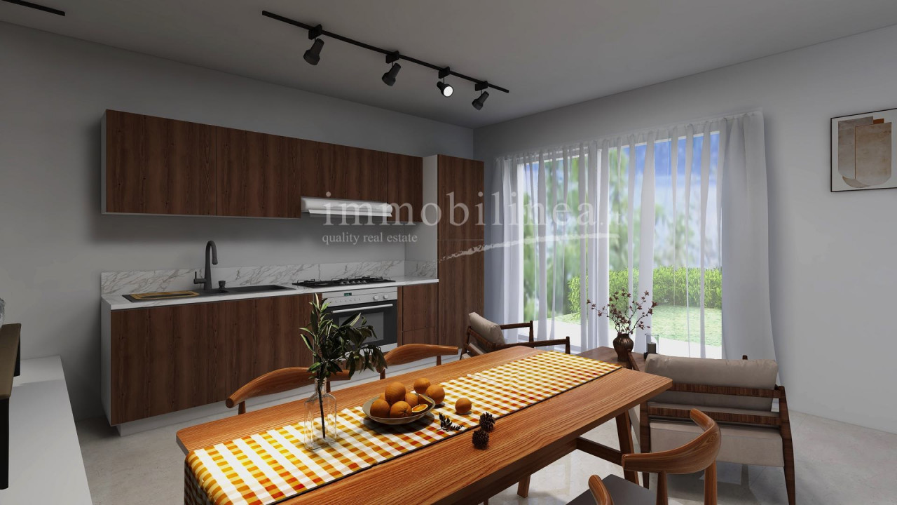 Al piano seminterrato, completamente ritrutturato un godibilissimo monolocale autonomo con bagno finestrato, un portico ed il giardino nel quale poter inserire una piccola piscina con una bellissima vista lago!