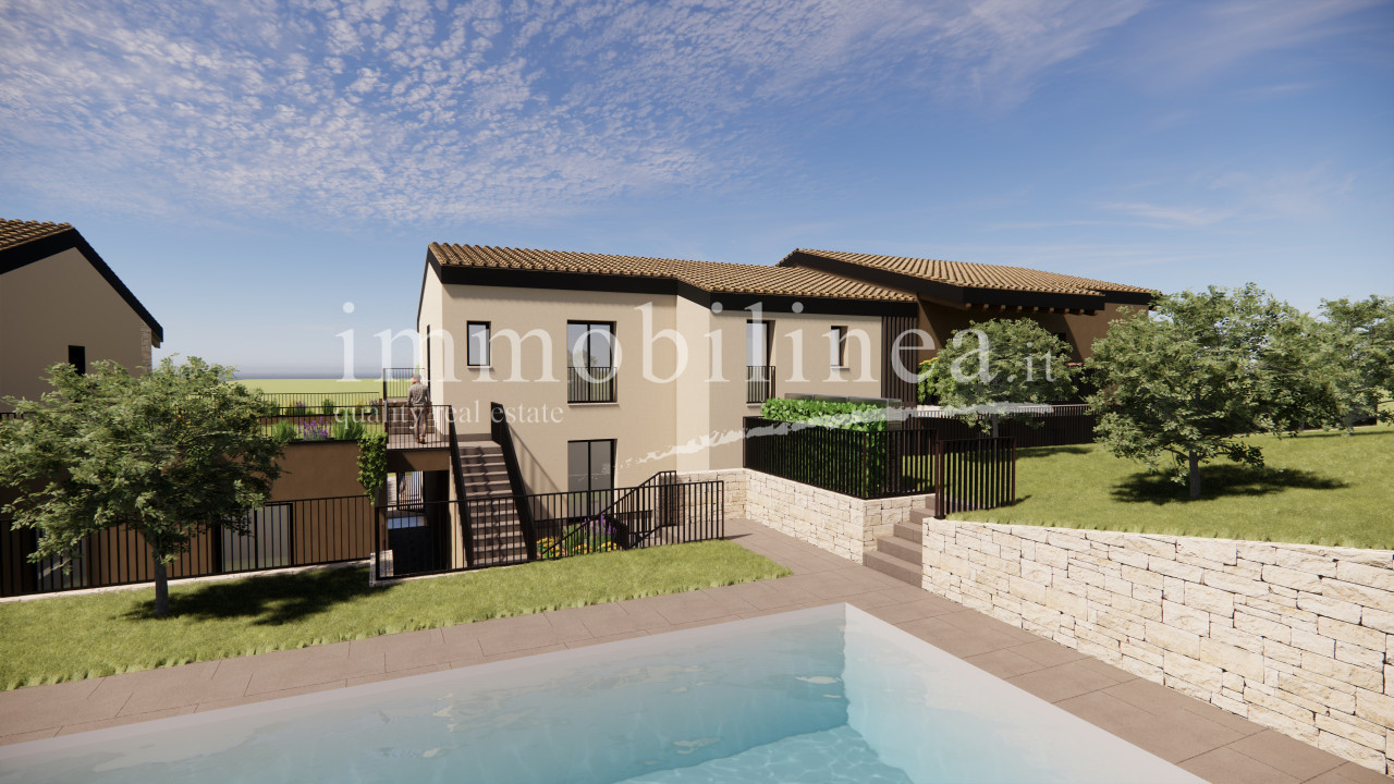 GARDA - Immobilinea è lieta di presentare in esclusiva il nuovo Residence Cimabue! Sta sorgendo in posizione vicinissima al centro rialzata e tranquilla, e sarà caratterizzato dalla gradevole estetica e da un'immersione nel verde che lo circonda. Si comporrà di tredici signorili appartamenti disposti al piano terra o primo. Saranno disponibili otto soluzioni trilocali, dotate quindi delle due camere da letto, di cui cinque al piano terra con giardino privato e tre al piano primo con le ampie vivibili terrazze. Il complesso, dotato di una bellissima piscina ad uso comune verrà realizzato in Classe A4 nel pieno rispetto dell'ambiente e delle normative vigenti con tutti gli appartamenti progettati con cura ed attenzione degli spazi e dei dettagli, realizzati secondo criteri costruttivi di ultima generazione e con la possibilità di soddisfare le idee individuali dell’acquirente che potrà sceglierne le finiture. Tutte le unità saranno dotate di garage nell'interrato, doppi in larghezza. Qualità edilizia elevata in combinazione con una posizione veramente comoda e tranquilla!