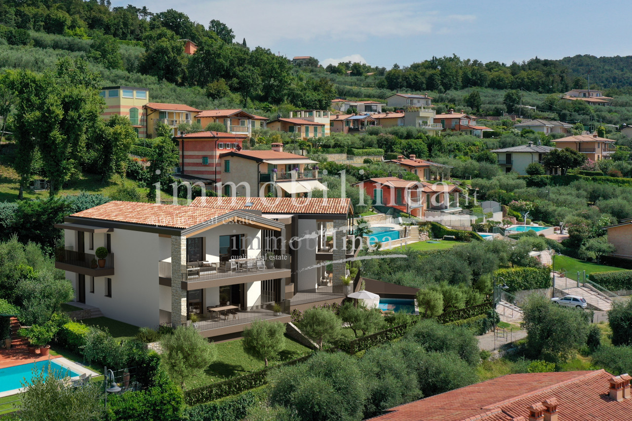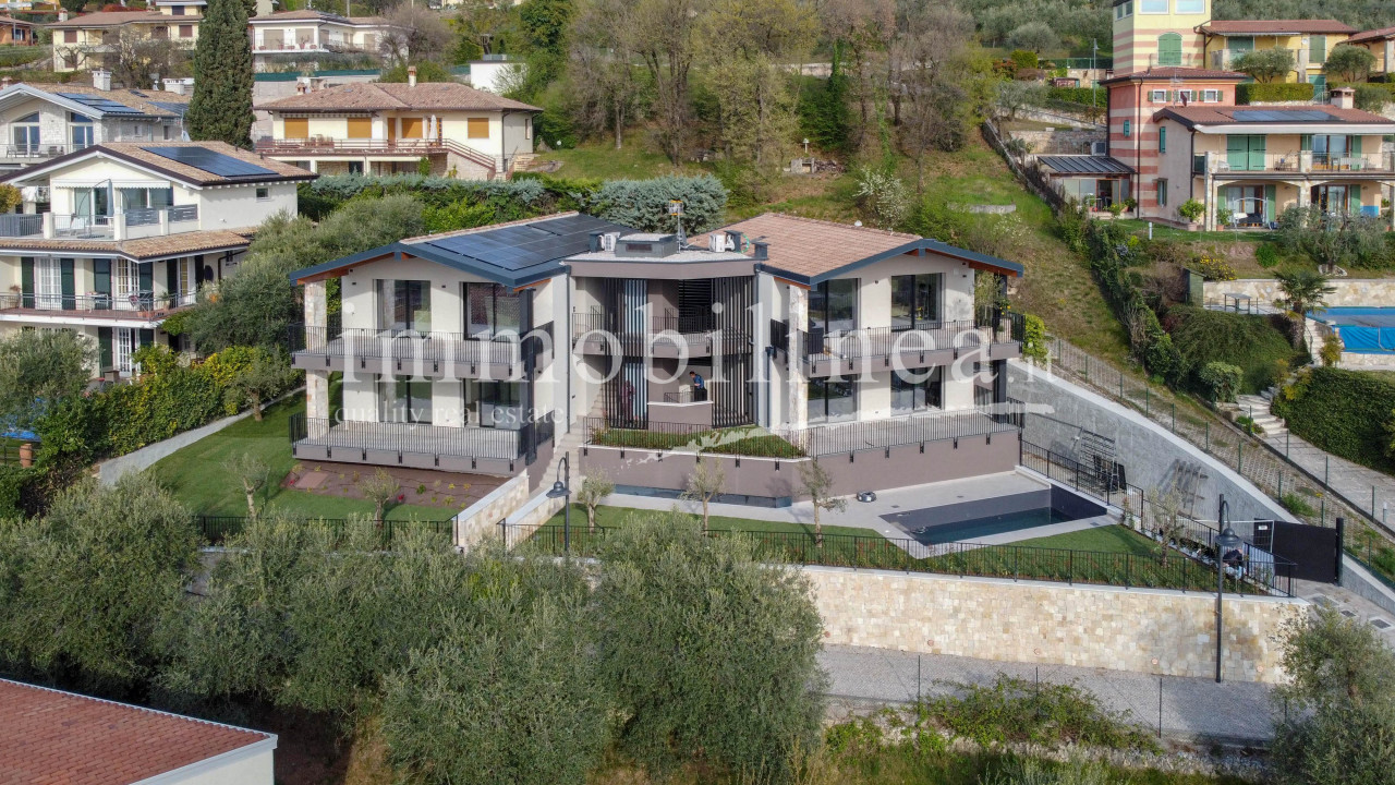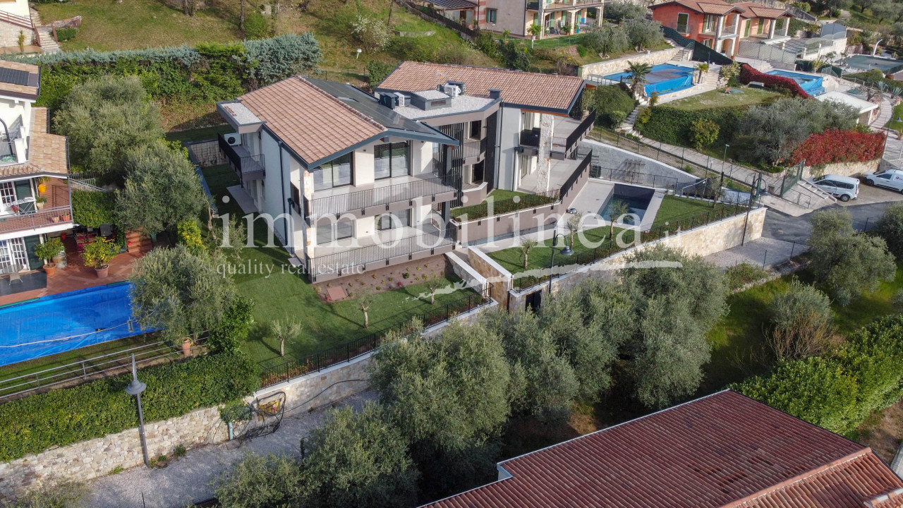 Qualità edilizia elevata in combinazione con una posizione veramente vantaggiosa. Il complesso verrà realizzato in Classe A+ nel pieno rispetto dell'ambiente e delle normative vigenti; gli appartamenti progettati con cura ed attenzione degli spazi e dei dettagli, realizzati secondo criteri costruttivi di ultima generazione e con la possibilità di soddisfare le idee individuali dell’acquirente. Saranno solamente 4 le unità immobiliari che andranno a comporre il residence, due appartamenti al piano terra con giardini esclusivi e due appartamenti al piano primo con terrazze abitabili che offriranno vedute spettacolari sul lago di Garda. Una piscina comune garantirà momenti di relax in tutta pace...Nell'interrato ogni appartamento avrà un garage di proprietà e la comodità di disporre di un ascensore che porterà ad ogni piano.