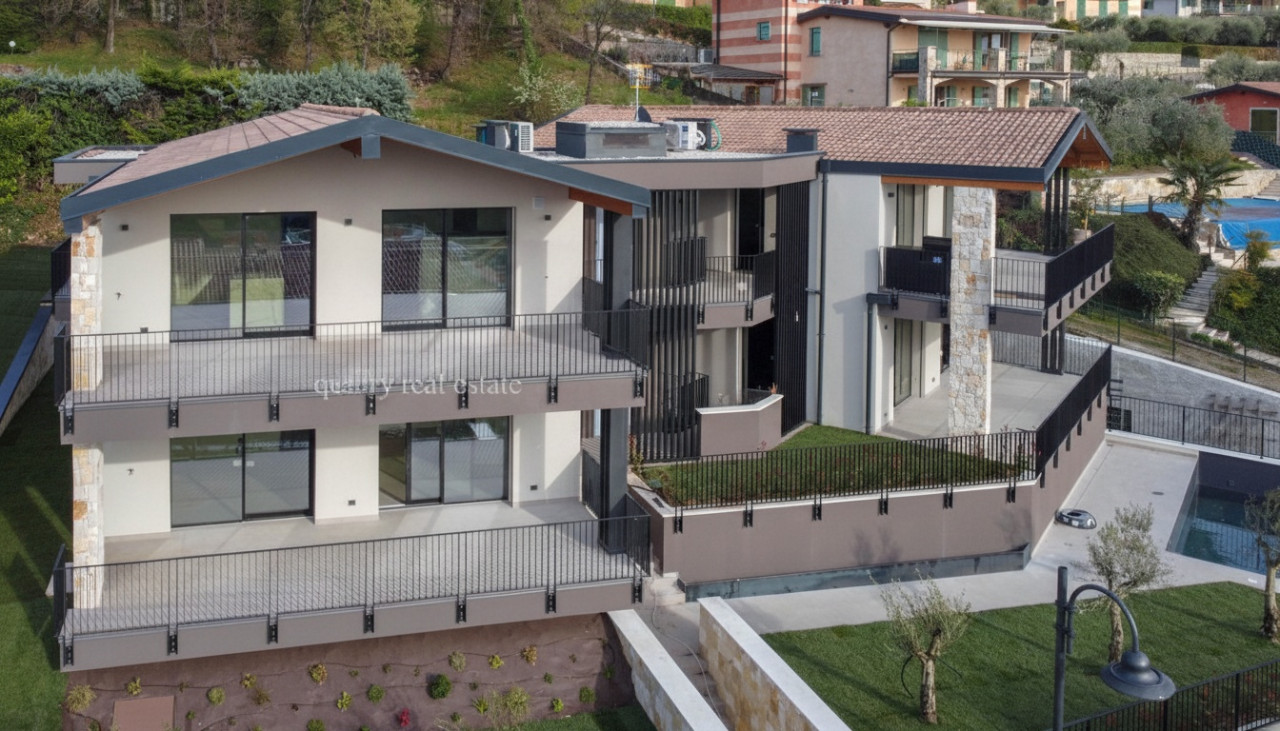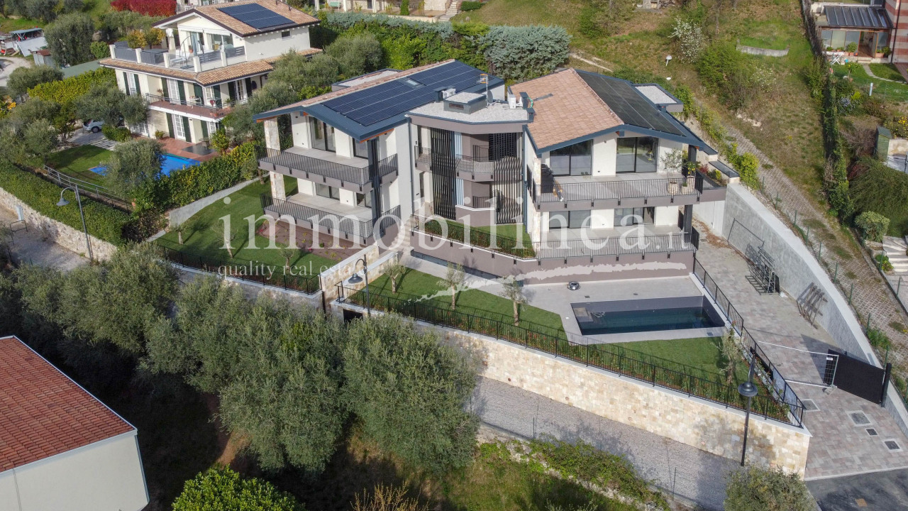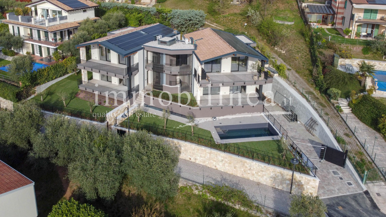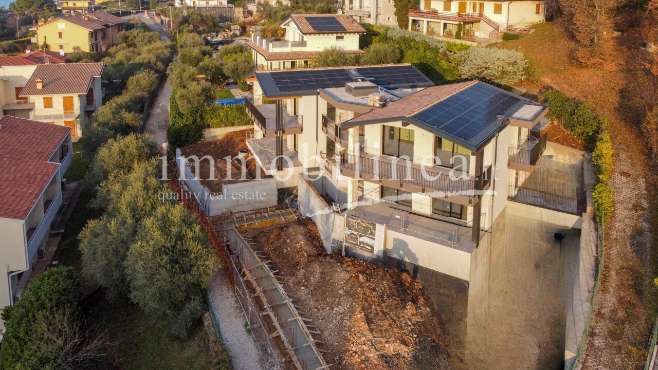 Qualità edilizia elevata in combinazione con una posizione veramente vantaggiosa. Il complesso verrà realizzato in Classe A+ nel pieno rispetto dell'ambiente e delle normative vigenti; gli appartamenti progettati con cura ed attenzione degli spazi e dei dettagli, realizzati secondo criteri costruttivi di ultima generazione e con la possibilità di soddisfare le idee individuali dell’acquirente. Saranno solamente 4 le unità immobiliari che andranno a comporre il residence, due appartamenti al piano terra con giardini esclusivi e due appartamenti al piano primo con terrazze abitabili che offriranno vedute spettacolari sul lago di Garda. Una piscina comune garantirà momenti di relax in tutta pace...Nell'interrato ogni appartamento avrà un garage di proprietà e la comodità di disporre di un ascensore che porterà ad ogni piano.