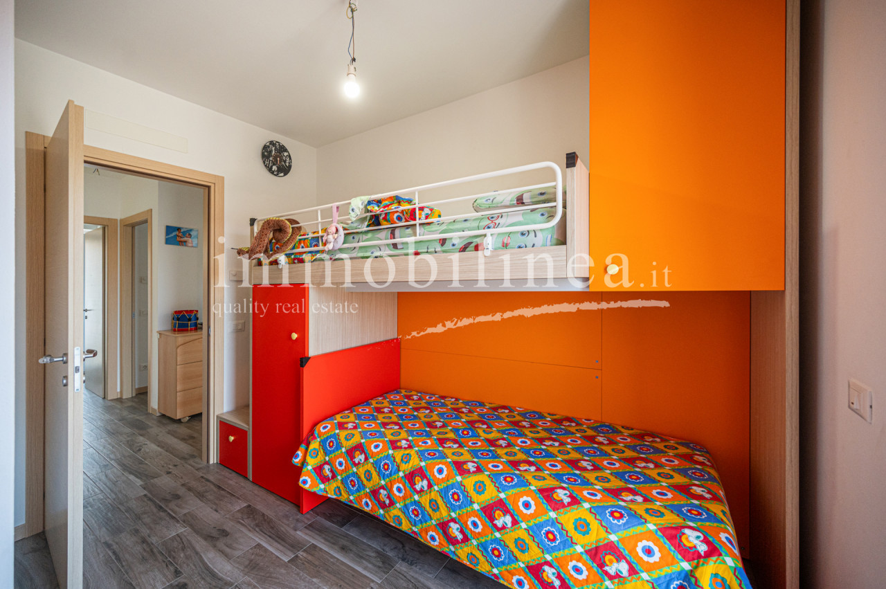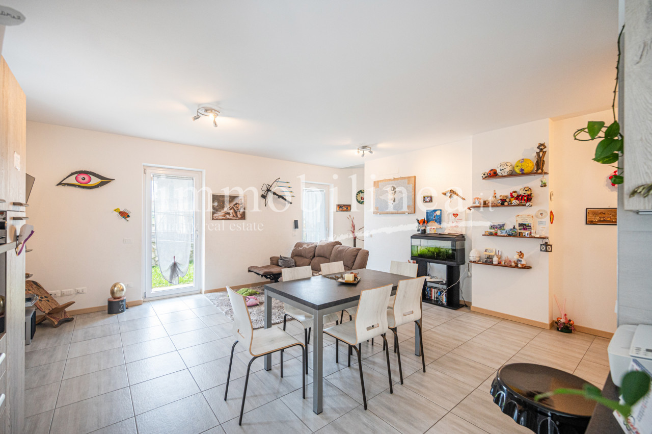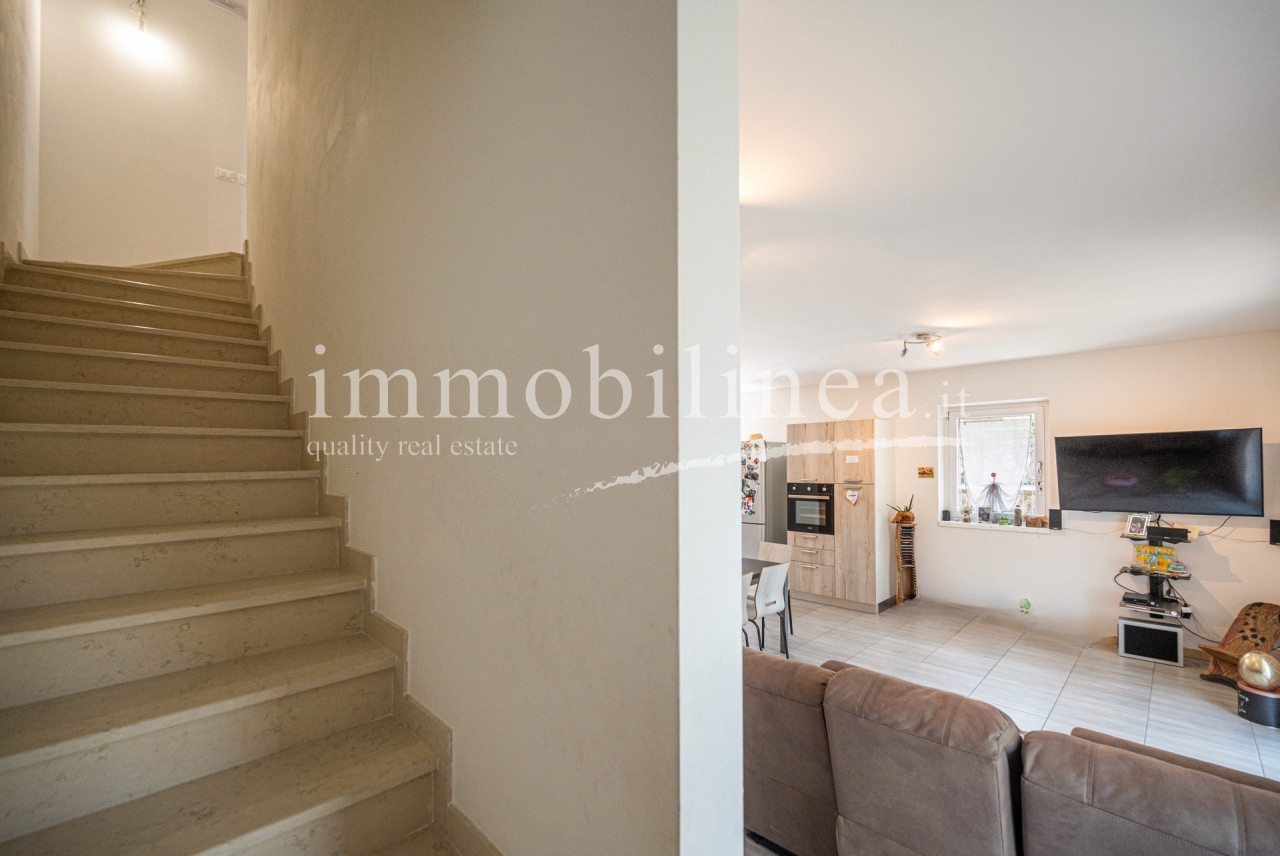 La disposizione interna dell'immobile è pensata per garantire il massimo comfort. Al piano terra troverai un luminoso e arioso soggiorno che invita al relax, un utile ripostiglio, un servizio/lavanderia finestrato e una cucina open space ben attrezzata con accesso diretto a un grazioso giardino privato, perfetto per le cene all'aperto durante l'estate. La zona notte al primo piano comprende tre camere da letto spaziose e accoglienti, due delle quali con il proprio balcone privato e un bagno completo, anch'esso con balcone.