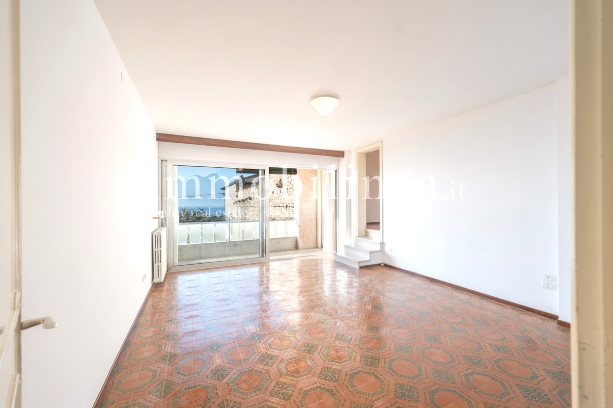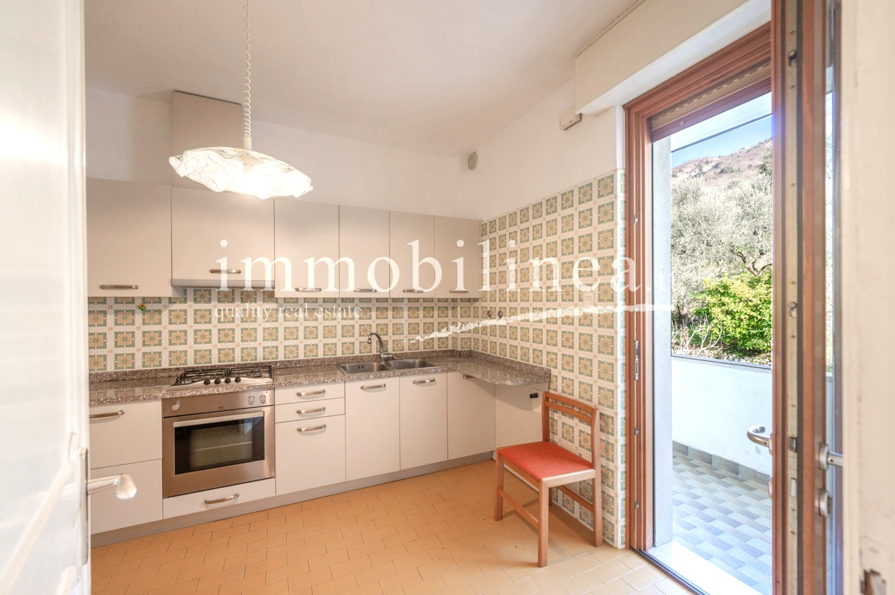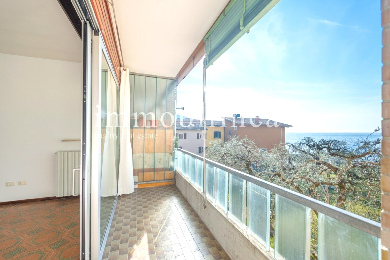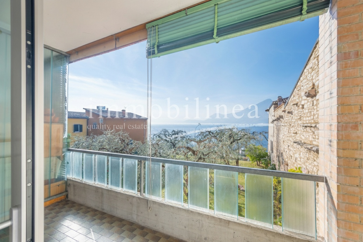 Con una superficie di circa 77 mq, offre spazi ben distribuiti che garantiscono luminosità e funzionalità. È composto da un accogliente soggiorno con vista panoramica sul lago attraverso l'ampia vetrata che conduce alla terrazza, dalla cucina abitabile con accesso al balcone vista uliveto, da due camere da letto spaziose ed un bagno finestrato.