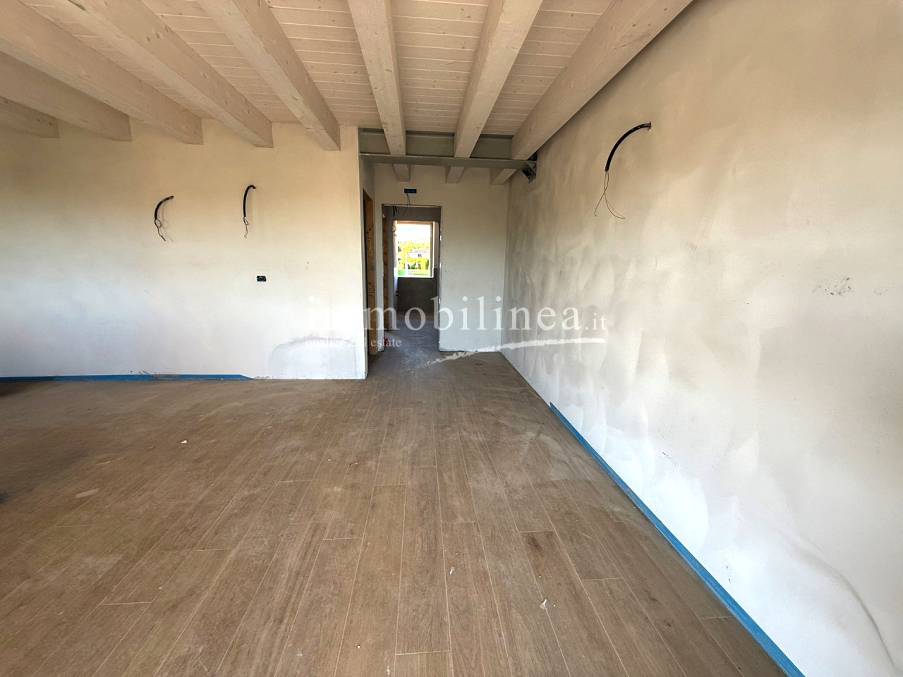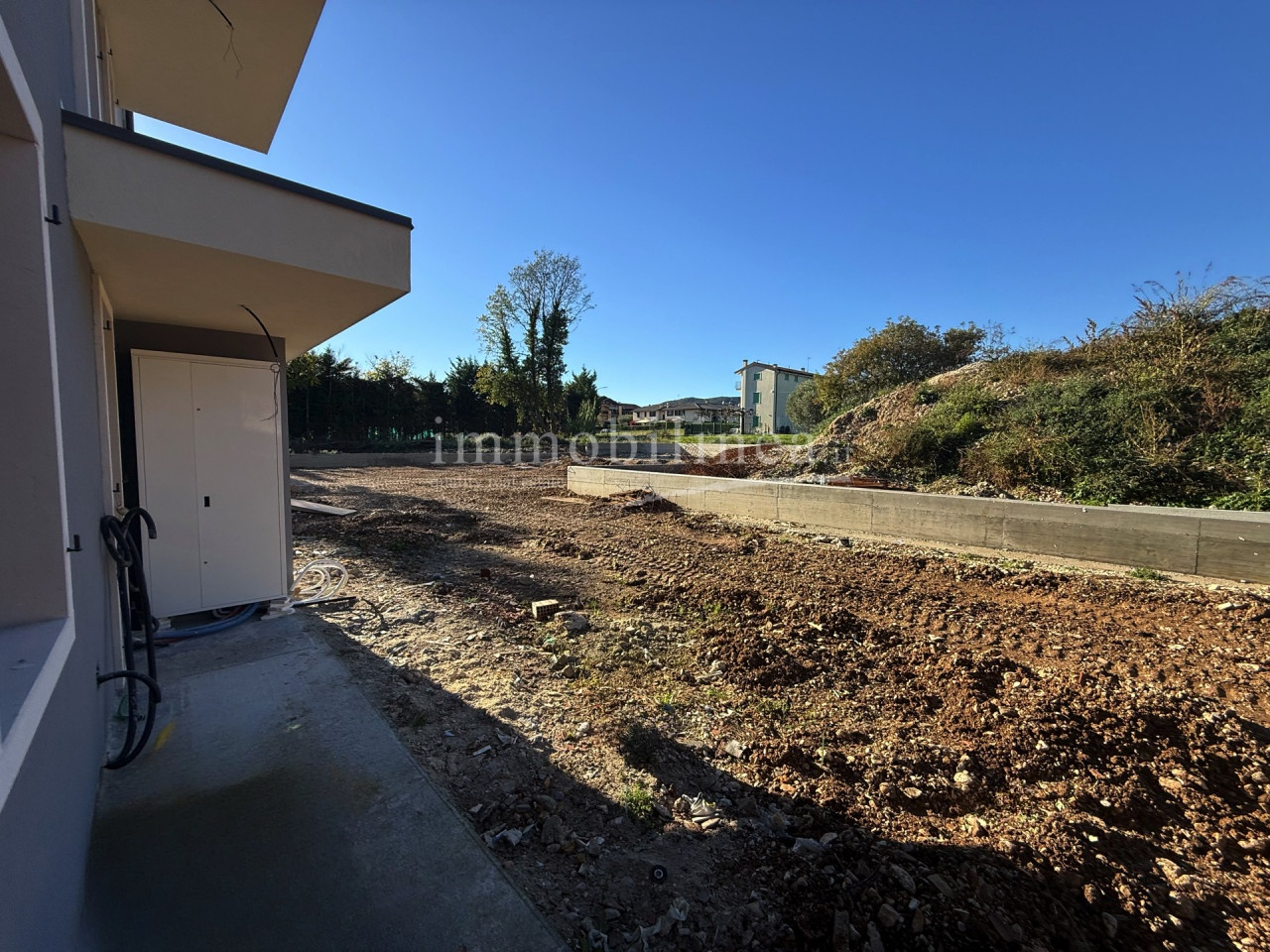 Piano terra con ampio giardino privato di 180 m² e porticato coperto di 10 m², perfetti per vivere all’aperto in totale privacy