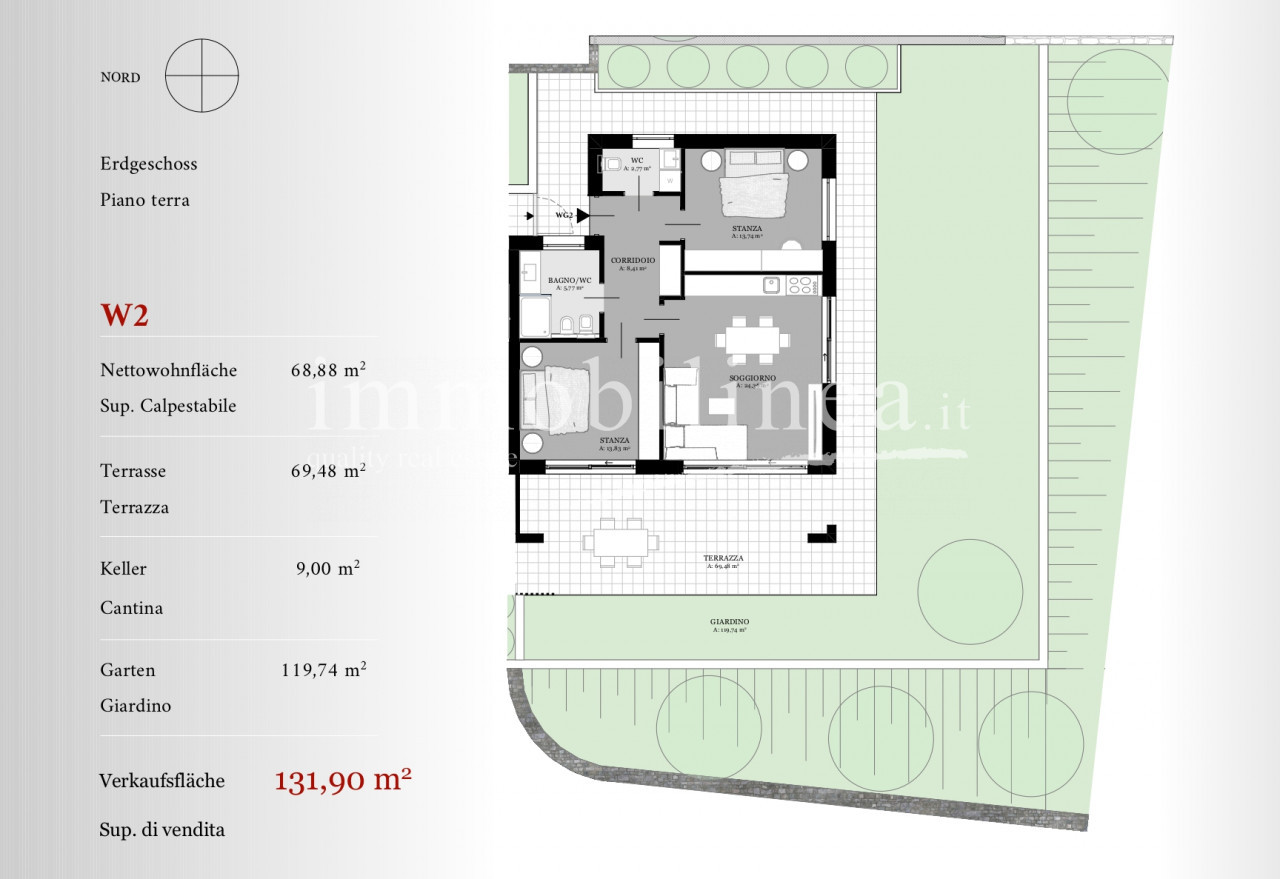 Nuovo Trilocale W2 con giardino in Residenza Esclusiva