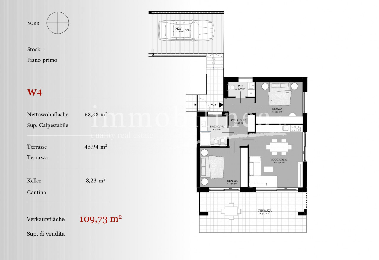 Gli appartamenti saranno realizzati in classe energetica A4, con materiali di prima scelta e tecniche costruttive moderne. Tra le caratteristiche principali: